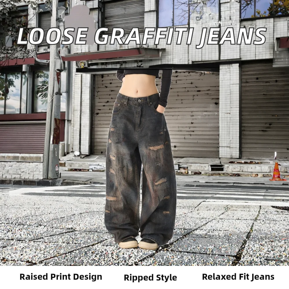 4.Enhanced design and style: Reinforced with unique, hand-embroidered patterns and a fashionable vintage ripped and hole patch aesthetic, these jeans are the perfect blend of style and practicality. They are available in diverse colors like antique bronze, gray, and graffiti patterns.